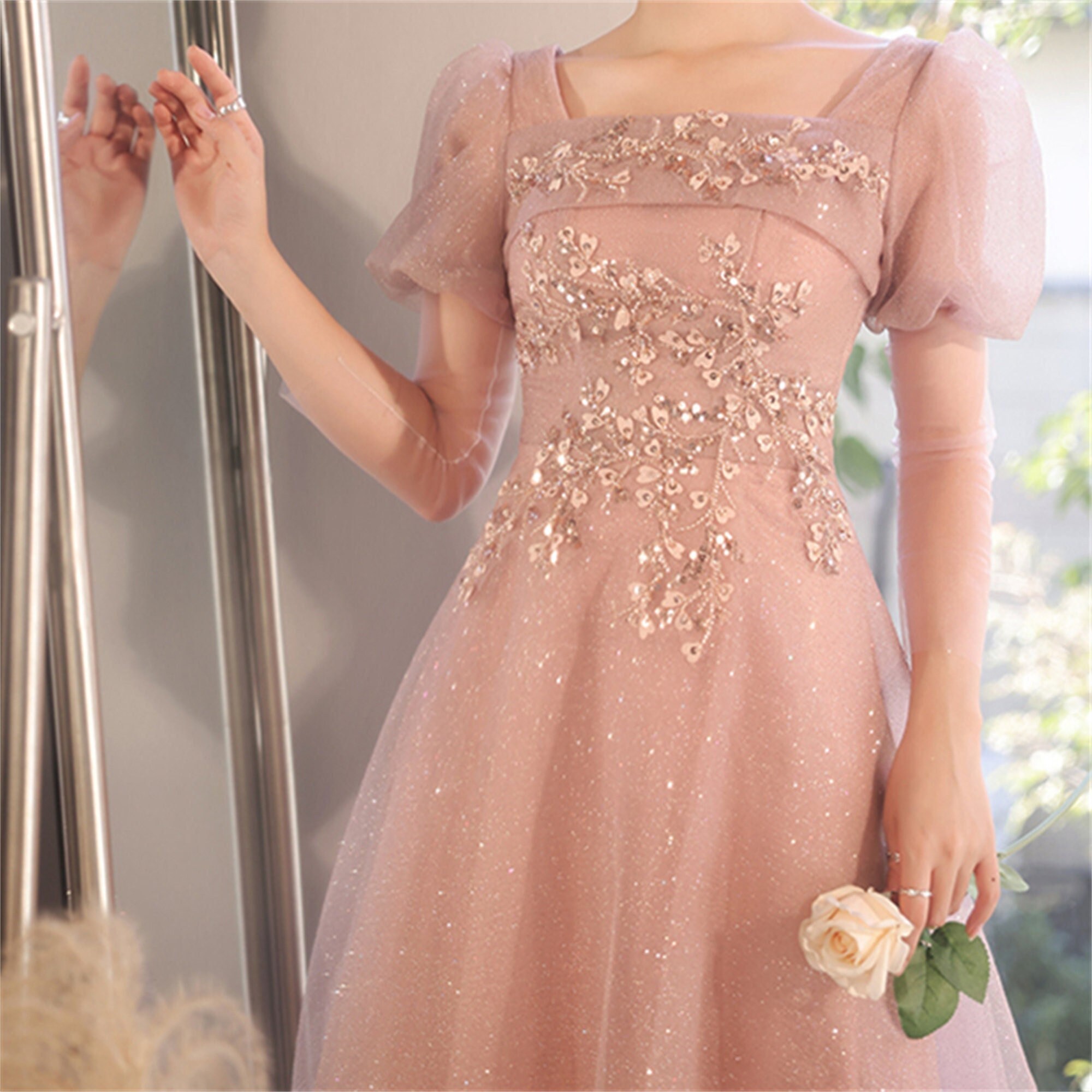18+ Puff Sleeve Homecoming Dress